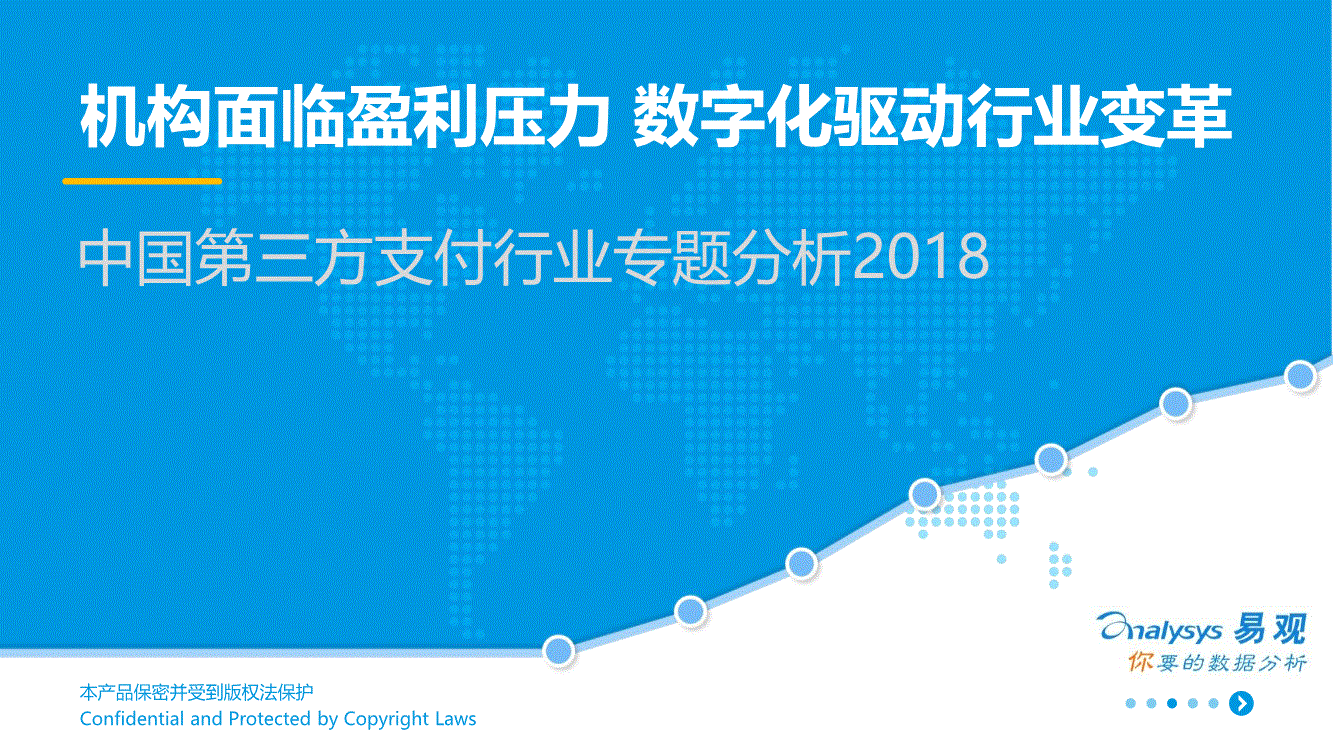 Confidential and Protected by Copyright Laws本产品保密并受到版权法保护机构面临盈利压力数字化驱动行业变革中国第三方支付行业专题分析20182018/9/262数据驱动精益成长分析定义及分析范畴分析内容◈✿ღ:本报告重点研究第三方支付行业◈✿ღ,包括互联网支付◈✿ღ、移动支付◈✿ღ、银行卡收单◈✿ღ。